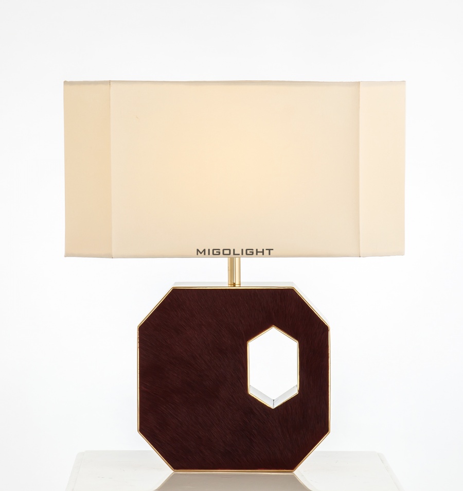 现代轻奢深紫红皮不锈钢台灯