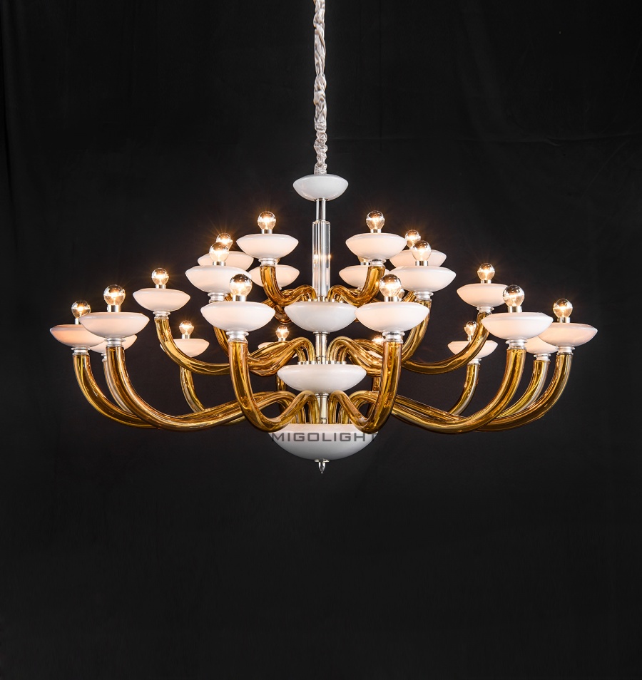 简约欧工玻璃原色玻璃白玉罩吊灯大号