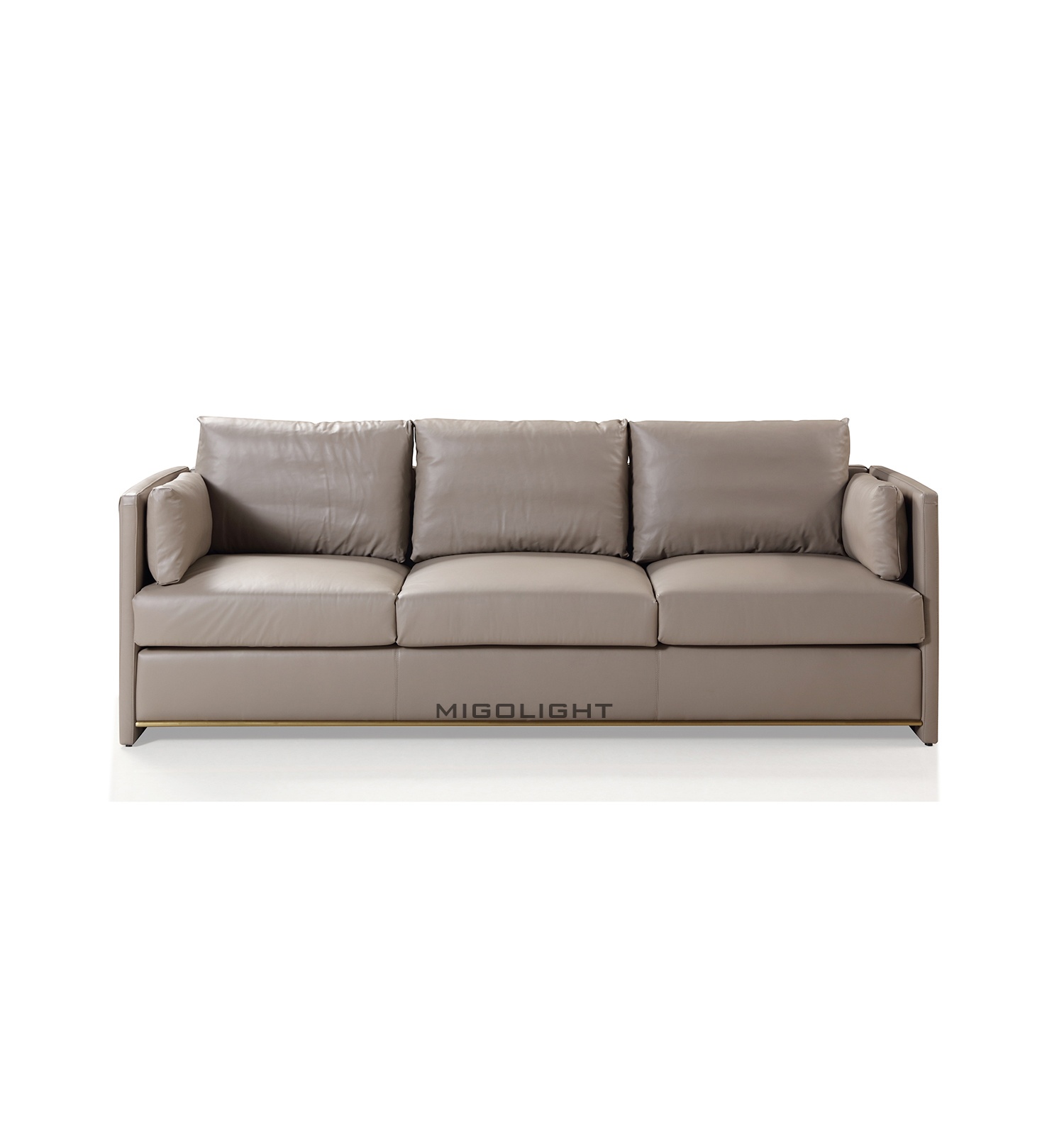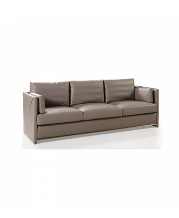 现代简约素灰色皮革三人位沙发
