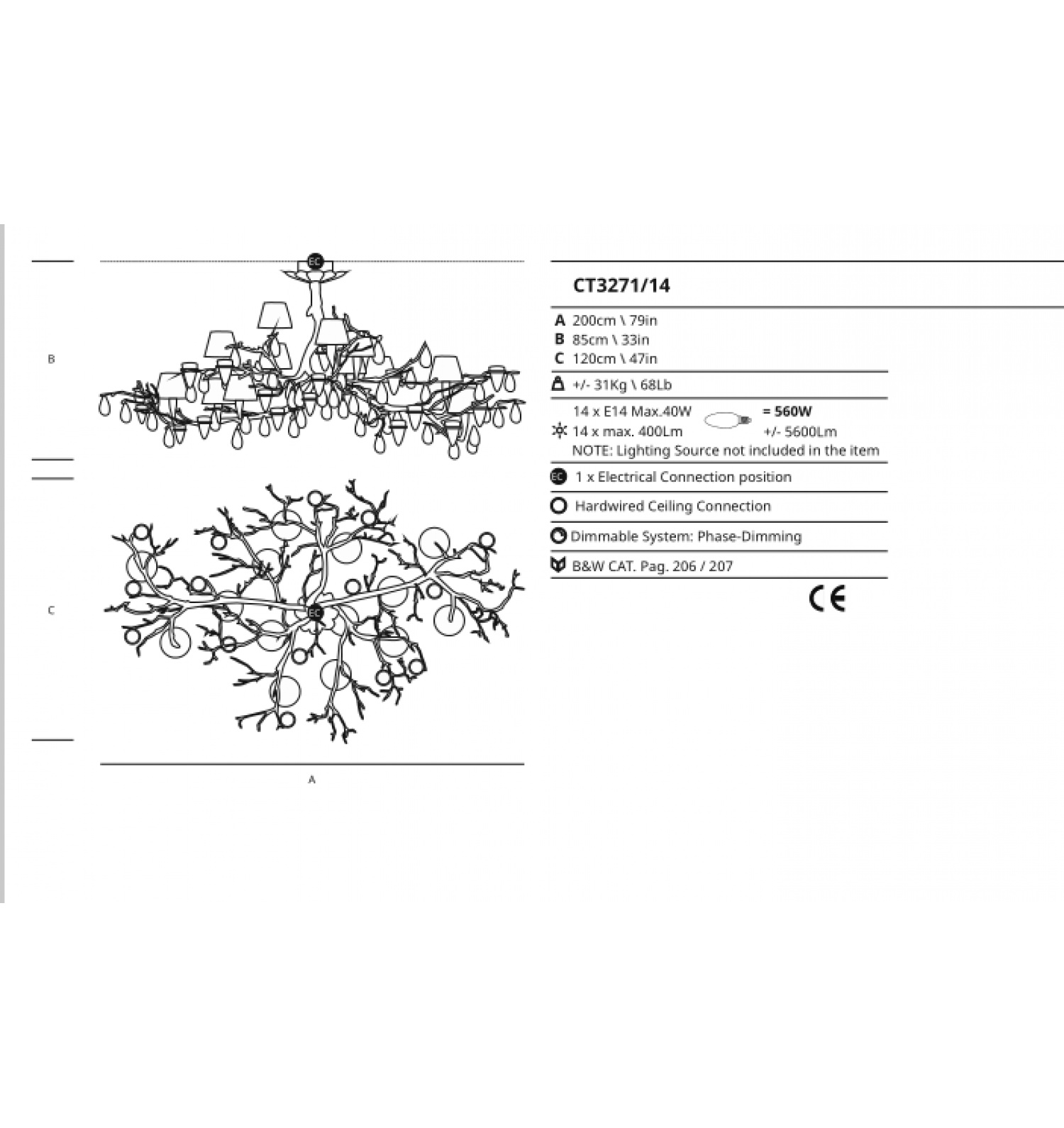 A200cm B85cm C120cm