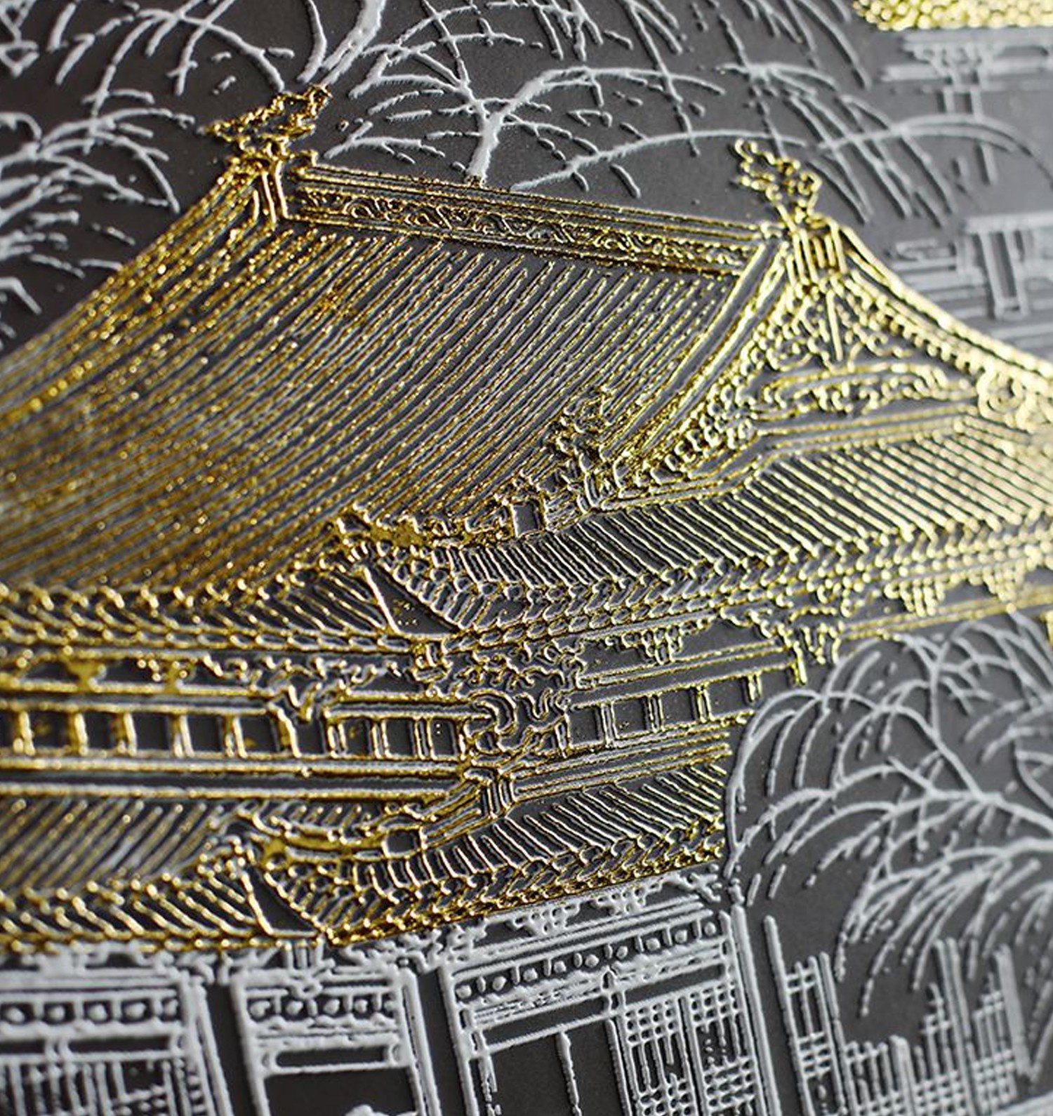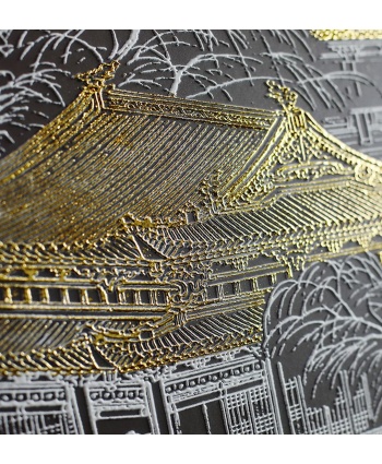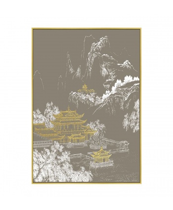 新中式轻奢肌理浮雕金箔山水装饰画